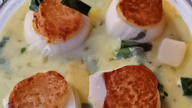 Cuire les saint-jacques à la poêle avec un peu de beurre.