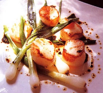 - Disposer à l'assiette, les poireaux, noix de Saint-Jacques et arroser de vinaigrette.