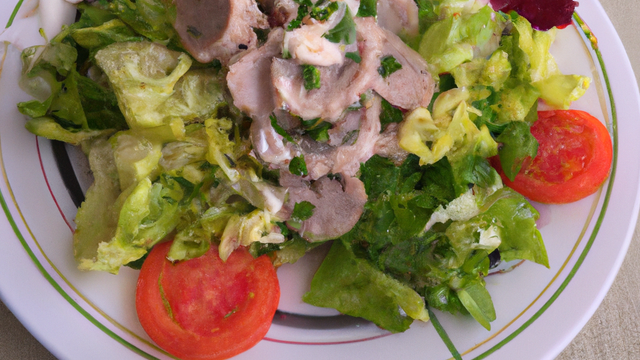 Une salade d'été avec de bons boudins blancs, des champignons frais, du parmesan, et une bonne vinaigrette.