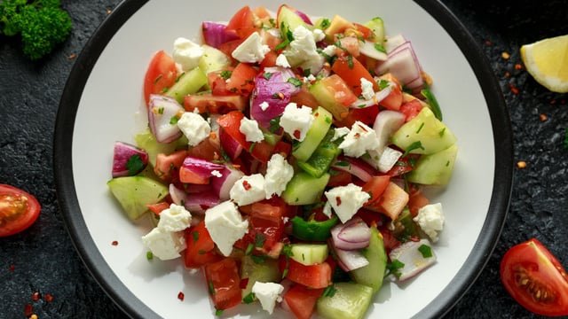 C'est l'été et vous avez envie de préparer une salade avec du fromage, et surtout de la feta ? Cette recette est un jeu d'enfant. Elle va vous dépanner à chaque fois que vous avez du monde qui débarque à l'improviste. D'abord, vous allez donner de la couleur aux assiettes en utilisant de la tomate, mais aussi du concombre. Pour donner davantage de fraîcheur et de gourmandise à cette salade de feta, vous pouvez également rajouter des morceaux de fruits comme de la pastèque ou encore du melon. Ensuite, vous allez préparer une vinaigrette maison pour votre salade de feta. Enfin, pour obtenir une touche méditerranéenne, n'hésitez pas à ajouter plus d'oignon rouge ainsi que quelques olives noires. Les petits et les grands vont se régaler !