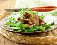 - 1Laver et essorer la salade, dresser dans des assiettes.