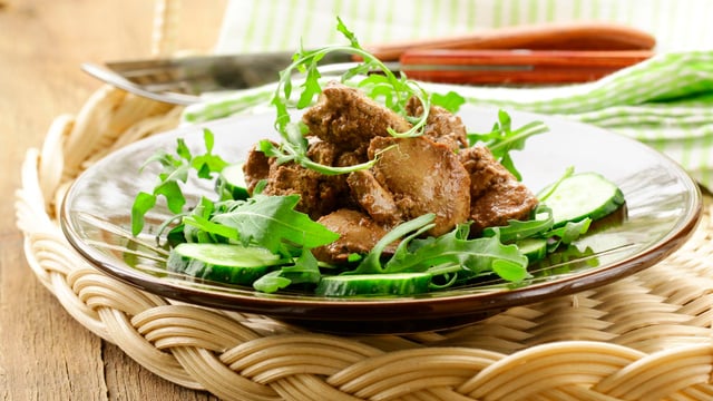 - 3Dresser sans attendre sur la salade et servir aussitôt.On peut préparer ces foies de volaille de la même façon sans les dresser sur une salade en versant le tout dans une coupelle afin de les servir comme mezzé.