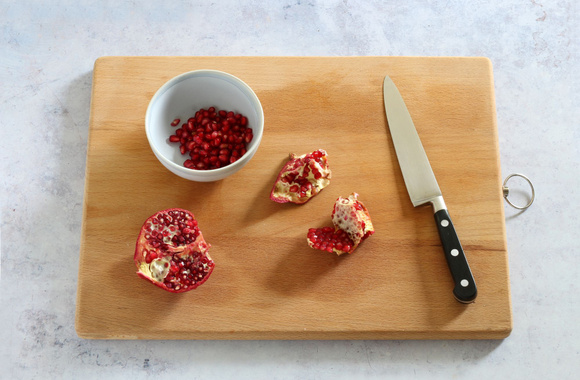 3Lavez la grenade, coupez-la à moitié et prélevez-en les graines.