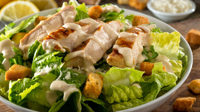 Vous avez envie d'une salade César encore meilleure que celle servie dans les brasseries de France ? Cette recette est tellement rapide et simple à faire ! D'ailleurs, vos invités vont tellement se régaler qu'ils vont vous demander quels sont vos secrets. D'abord, le choix et la découpe des ingrédients sont un jeu d'enfant. Ensuite, au lieu de l'acheter toute prête en supermarché, vous allez faire la sauce nécessaire pour assaisonner la salade César par vos propres moyens. Idéalement, vous devez conserver cette sauce au moins une heure au frigidaire avant de la verser sur votre salade César. Enfin, pour apporter du croustillant à votre salade César, vous ajouterez des croûtons de pain. Cuits en un temps record à la poêle, ces délicieux petits morceaux de pain grillés seront la touche finale de votre salade. En somme, dès la première bouchée, vous allez adorer la saveur de cette salade César !