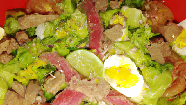 Disposer la salade dans un saladier avec les tomates coupées en morceaux.