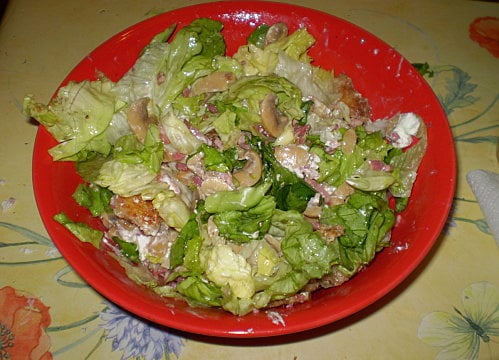 Ajouter le mélange lardons, champignons et croûtons à la salade.