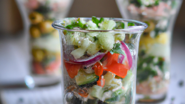 Répartir la salade dans des verrines.
