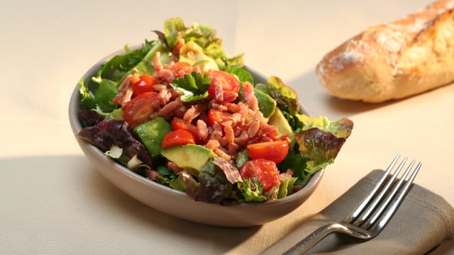 Vous n'avez pas d'inspiration pour le repas du midi ou soir et vous cherchez une idée d'entrée facile et rapide à faire ? Cette salade composée d'avocats bien mûrs, de quelques tomates cerises juteuses et d'une barquette de lardons grillés va régaler tous vos invités ou votre famille. Si vous n'avez plus de lardons au frigidaire, vous pouvez les remplacer par du blanc du poulet grillé ou bien alors du bacon. Pour parfumer votre salade d'avocats et de lardons, vous allez avoir besoin de quelques traits de vinaigrette biphasée du commerce ainsi de quelques gouttes d'huile d'olive. Dès la première bouchée, tout le monde va adorer cette salade d'avocats et de lardons.