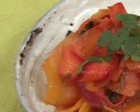 Mélangez le jus de citron avec le jus des oranges. Assaisonnez et ajoutez les coriandres et l'huile d'olive.