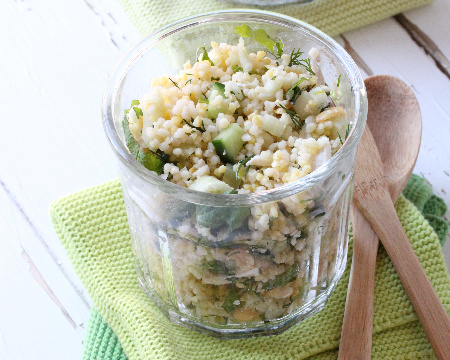 - 4Laver le concombre et le fenouil.Les découper en petits morceaux (garder la peau du concombre pour plus de croquant).Les ajouter aux céréales.
