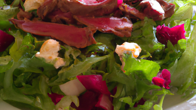 Les dresser dans 4 petites assiettes et disposer harmonieusement dessus le magret fumé (200 g).