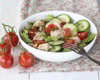 Cette salade de concombres, de tomate et de thon est un classique qui fait toujours son petit effet auprès des invités. En plus, elle est tellement facile à faire qu'elle peut vous dépanner en cas de manque d'inspiration pour le déjeuner ou le dîner. Après avoir coupé les concombres en tranches et les tomates cerise en deux, vous allez les répartir dans un saladier. Ensuite, vous allez émietter un peu de thon sur le dessus. Si vous n'en avez pas, vous pouvez également rajouter du saumon fumé, du jambon ou de la dinde. Pour donner encore plus de goût à votre salade, vous allez la parfumer avec une vinaigrette maison à base de vinaigre, d'huile et de moutarde. Enfin, pour avoir du croquant, vous pouvez rajouter du maïs ou bien des cornichons. Vous allez vous régaler !