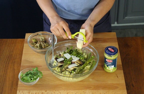 10Finissez par ajouter les copeaux de parmesan et juste avant de déguster, ajoutez la roquette.