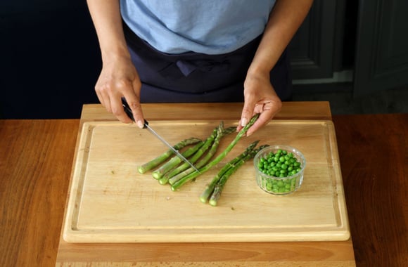 2Nettoyez les asperges et éliminez la partie blanche des tiges.