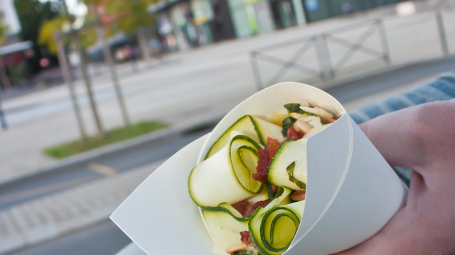 Une petite recette de salade de courgettes très simple à réaliser que je présente en cornet afin de montrer qu'il n'y a pas que des sandwichs dans la Street Food.