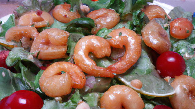 Verser la préparation de crevettes sur la salade et servir.