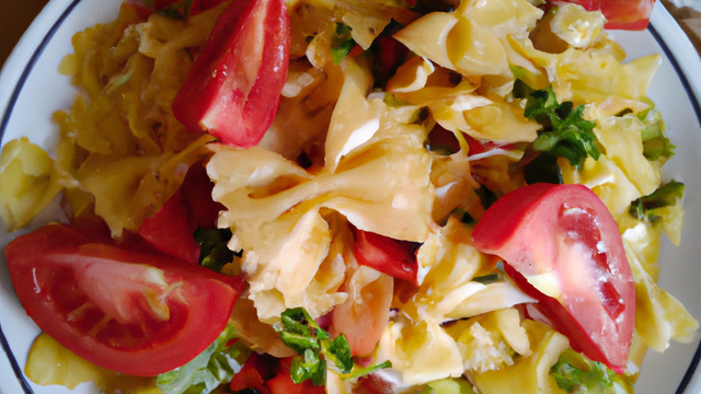 5. Mélanger les pâtes aux poivrons et tomates et servir.