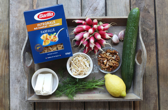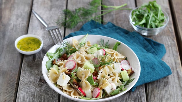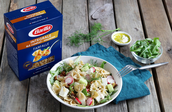 Les pâtes au blé complet confèrent un goût particulier à cette salade de pâtes très fraîche, idéale pour les tablées d'été.