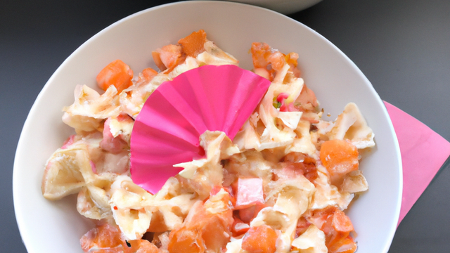 Salade très rafraîchissante, à base de farfalles, de miettes de surimi et de pamplemousse rose.