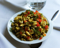 Faites chauffer très rapidement les flageolets au micro-ondes, ils doivent à peine être tiédis. Ajoutez le mélange des saumons à l'aneth. Nappez de sauce et mélangez le tout rapidement. Dégustez sans attendre.