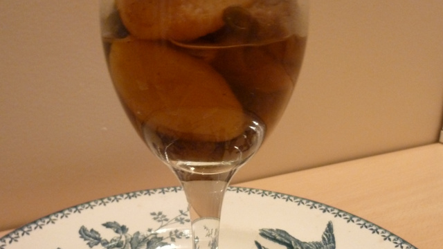 Couvrez et laissez les fruits gonfler pendant ½ heure environ, puis répartissez-les dans 4 coupes en les arrosant du sirop de cuisson.