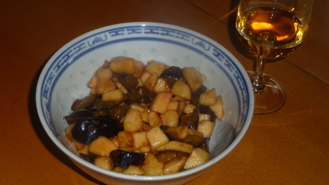 Dénoyauter et couper les prunes en morceaux, couper les pommes en cubes.