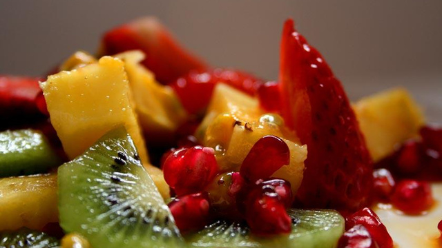 Pelez les kiwis et les oranges et le pomelo, coupez les kiwis en tranches fines et détachez les segments des autres fruits.