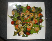 Sur le dessus de chaque saladier disposer les noix de St Jacques chaudes sans les mélanger à la salade et servir tout de suite.