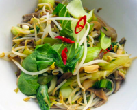 C'est très bon mélangé avec quelques pâtes chinoise ou avec un petit poisson simplement poêlé.