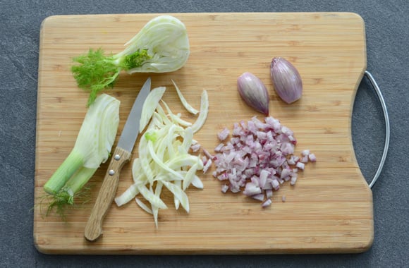 2Coupez le fenouil en fines lamelles.