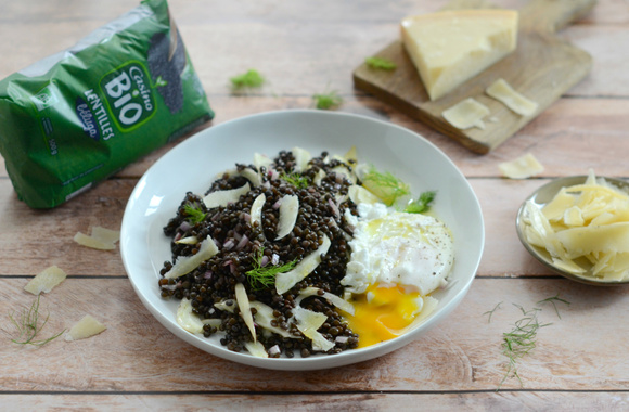 Une salade pour un repas complet avec ces lentilles au fenouil et à l'œuf poché.