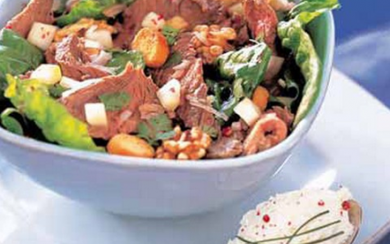 Dans un plat creux déposer les pousses d'épinard et les tranches de paleron. - 3
