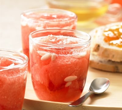 Pelez vos pamplemousses à vif et récupérez les suprêmes (quartiers sans la peau). Répartissez-les dans 4 verres. Placez au réfrigérateur.