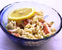 Amateurs de pâtes, vous avez envie d'une entrée fraîche et gourmande ? Vous avez frappé à la bonne porte. Tout d'abord, elle se prépare en un temps record. Donc, si vous n'avez pas d'inspiration, elle peut vous dépanner pour les déjeuners et les dîners. Ensuite, pour donner de la couleur à cette salade de pâtes, vous allez juste avoir besoin de quelques morceaux de surimi ainsi que de tomate. Si vous aimez le fromage, vous pouvez aussi bien mettre du gruyère que des morceaux de feta ou de chèvre. Enfin, à la dernière minute, vous allez mélanger les ingrédients de cette salade de pâtes avec de la mayonnaise du commerce ou faite maison. Vous allez servir cette salade de pâtes à un barbecue ou bien l'amener pour un pique-nique. Les petits et grands vont l'adorer !