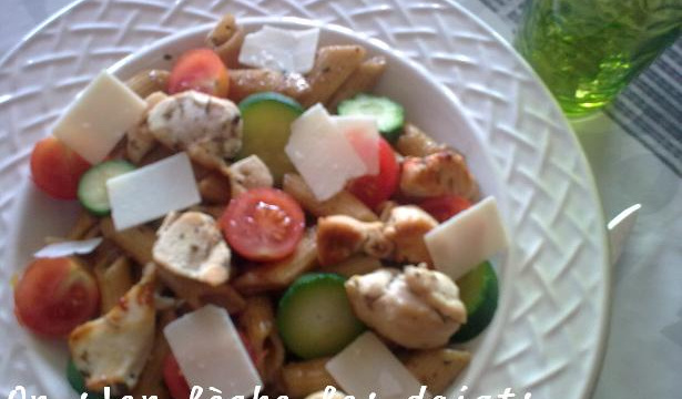 Mélanger à nouveau avec le poulet, les courgettes, les tomates cerise coupée en deux. - 6