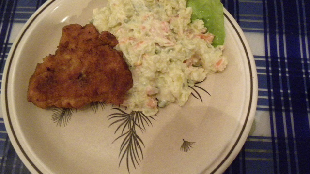 Une recette traditionnelle slovaque qui se retrouve sur les tables au réveillon de Noël. En entrée, cette salade de pommes de terre est déclinée suivant l'inspiration de l'hôtesse de maison. Elle est généralement étalée sur une tranche de pain sur laquelle on a déposé une tranche de jambon.