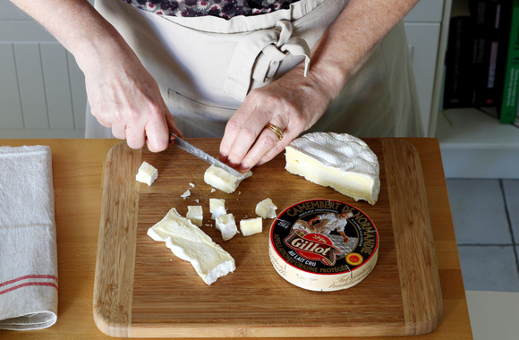 8Coupez le camembert en dés.
