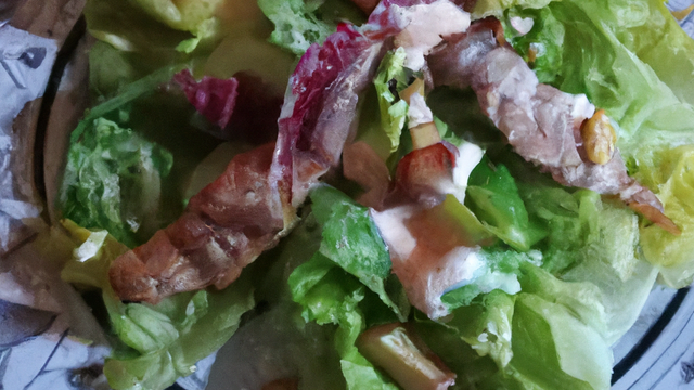 Dans un wok, faire revenir l'oignon émincé avec 1 c à s d'huile. Ajouter le poulet et le bacon coupé en lamelles. Ajouter le miel et le vinaigre.