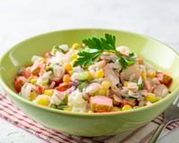 Les conseils de Chef Christophe : Réserver au frais jusqu'au moment du service. Vous pouvez rôtir le poivron dans un four très chaud, et lorsque la peau devient noire, mettez le dans un sac congelation pour quelques minutes. Il sera très facile à éplucher, et sera presque confit ... Lorsque le riz est cuit et bien égoutté, une petite goutte d'huile mélangée permettra d'éviter que le riz ne colle.
