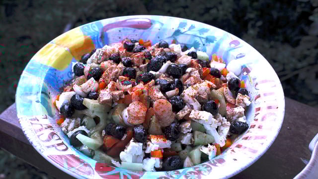 Laver et couper le melon, le concombre, les tomates, l'échalote et le fromage de votre choix. Ajouter des olives noires et une bonne vinaigrette balsamique. Mélanger et ajouter des fines herbes fraîches (menthe, coriandre ou basilic) dans un plat de votre choix. A servir frais.