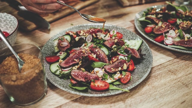 Laissez reposer à température ambiante le temps de préparer la salade.