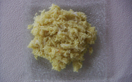 Mélanger les crevettes avec les miettes de crabe. Ajouter le riz.