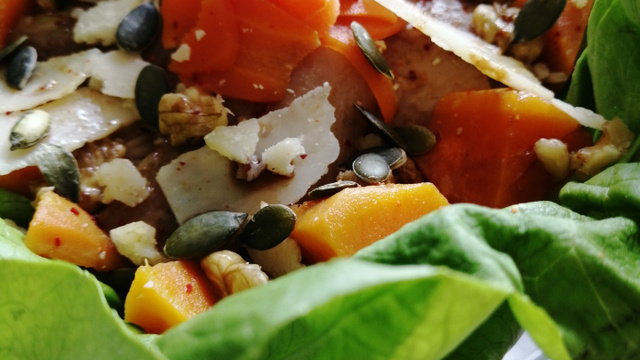 J'ai revisité la salade de Hareng traditionnellement mangée en été avec des produits hivernaux et je ne peux que vous la conseiller maintenant ! Le mariage des saveurs est très intéressant :) Cette recette respecte les différents besoins énergétiques d'une journée elle est donc totalement équilibrée, allons y de bon cœur aha ! Bon appétit à tous ! ^^
