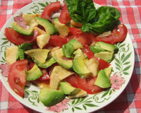 Coupez la pomme en petits dés, citronner, l'avocat en lamelles, citronner, les tomates en rondelles (j'épépine toujours), disposez harmonieusement, en alternant les couleurs, les 3 ingrédients.