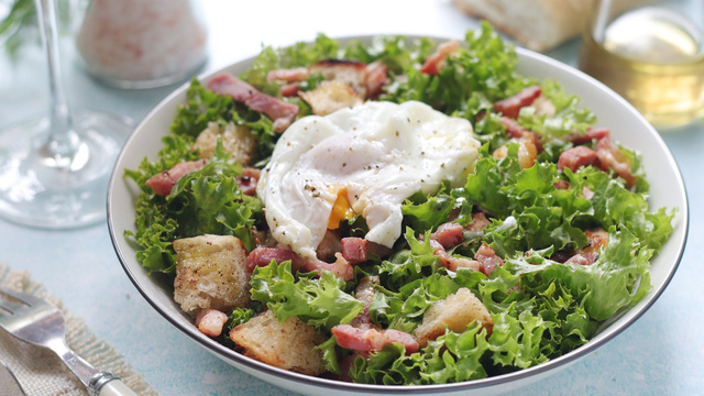 Dans la région lyonnaise, cette salade est un classique de la gastronomie. De surcroit, cette recette de salade alterne deux aliments chauds (oeufs mollets et le lard fumé) et deux ingrédients froids (la laitue et les pissenlits). Donc, elle peut être servie aussi bien en plat principal, en accompagnement, ou encore en entrée. Pour la réussir, vous allez avoir besoin de lard fumé, mais aussi d'œufs mollets. D'abord, vous allez les faire frire quelques minutes dans une poêle. Dans un second temps, vous allez les mélanger à du vinaigre de vin et moutarde. De plus, la fraicheur de la laitue assaisonnée au préalable avec cette vinaigrette maison originale va donner un peu de fraicheur à votre salade lyonnaise mi-cuite. Vos invités vont se régaler !