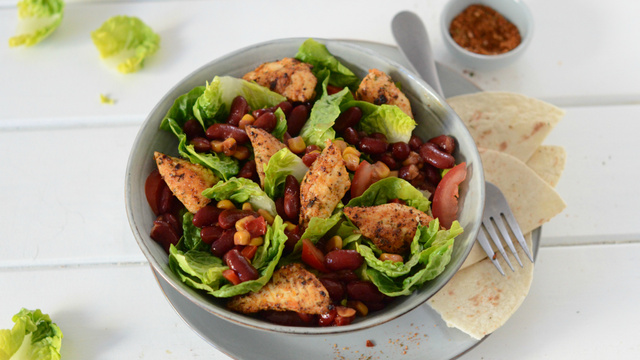 Une salade gourmande, simple et rapide aux saveurs mexicaines pour un repas complet.