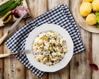 La salade piémontaise est une salade mythique originaire du Piémont en Italie. C'est une salade de pommes de terre agrémentée de tomates, d’oeufs durs, de cornichons et de mayonnaise. Elle sert froide dès que la saison des tomates arrive.