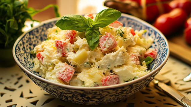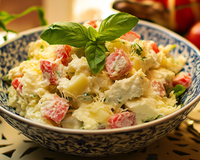 Salade de pomme de terre au jambon, tomates, cornichons, oeufs