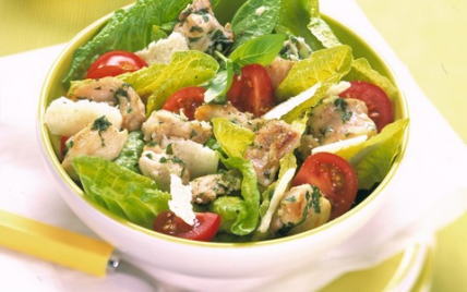 Ajoutez la sauce sur la salade, mélangez et servez aussitôt.