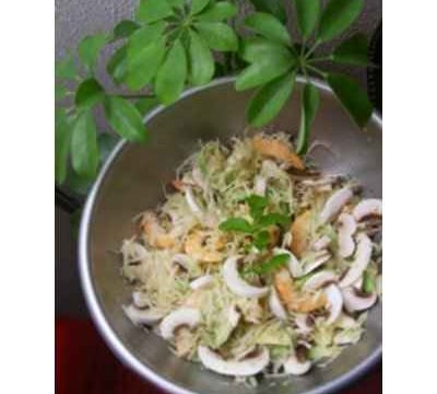Disposez dans un saladier les avocats préalablement découpés en lamelles et arrosez de jus de citron. Y ajoutez les crevettes décortiquées et cuites, le céléri râpé de préférence (il est ainsi plus digeste), puis les champignons de Paris découpés.
